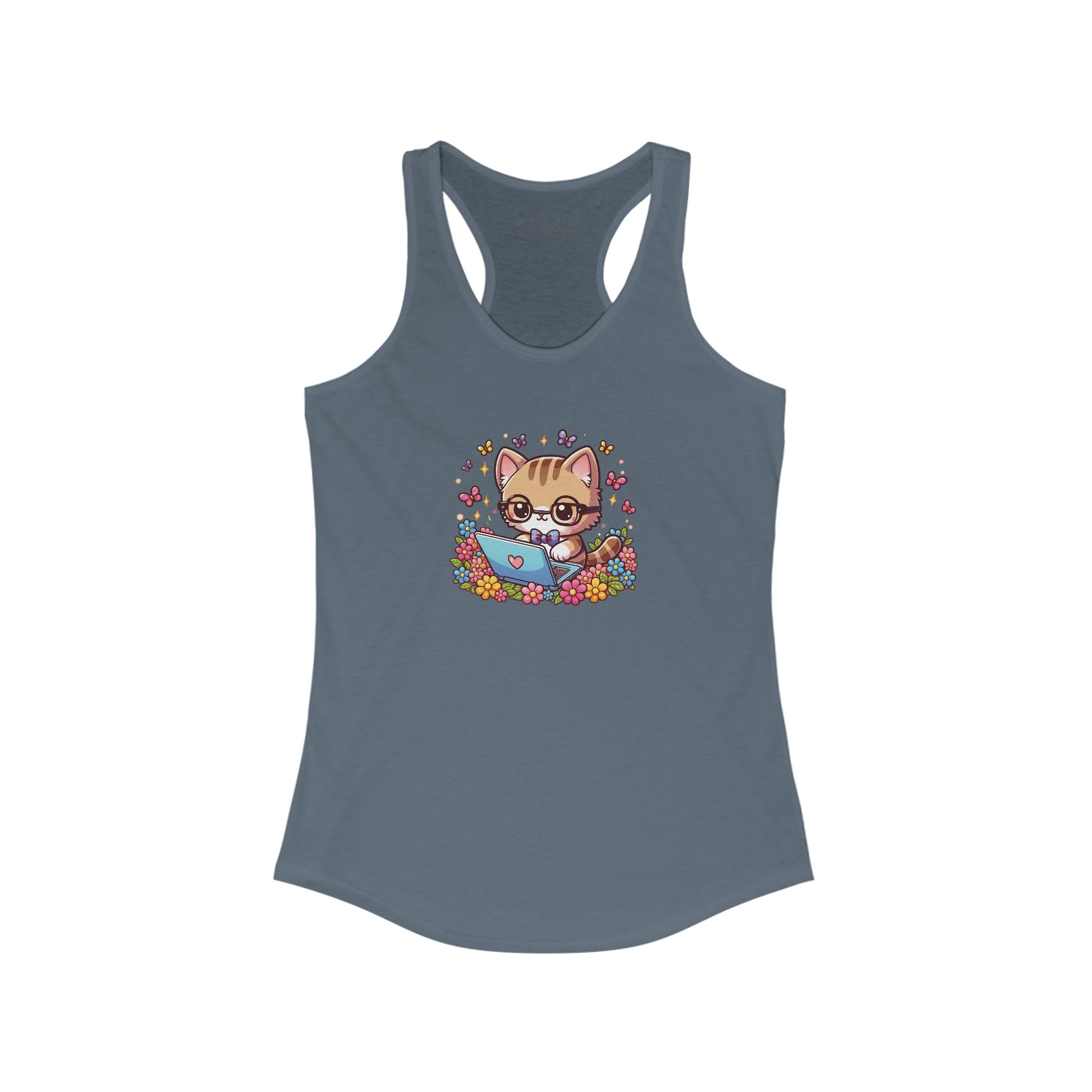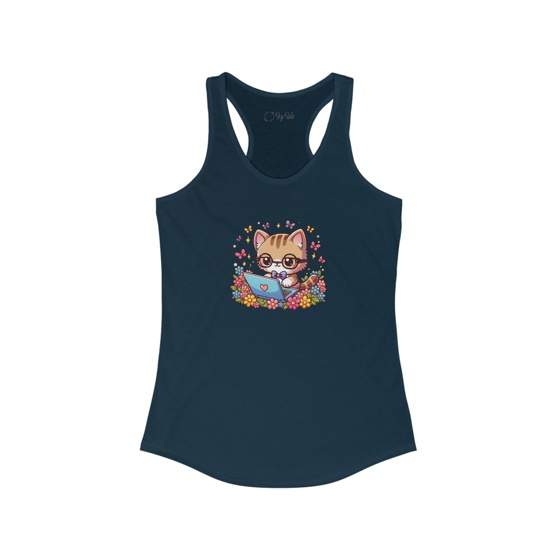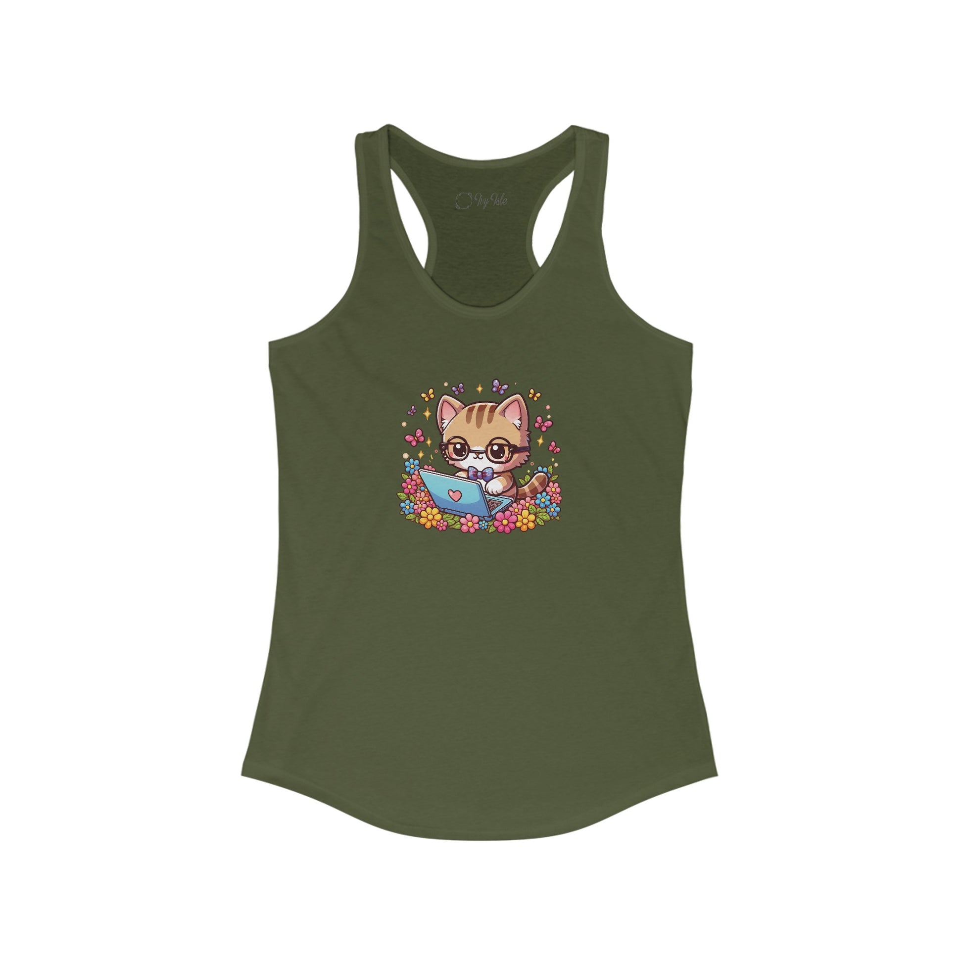 Cat with Flowers and Laptop Racerback Tank