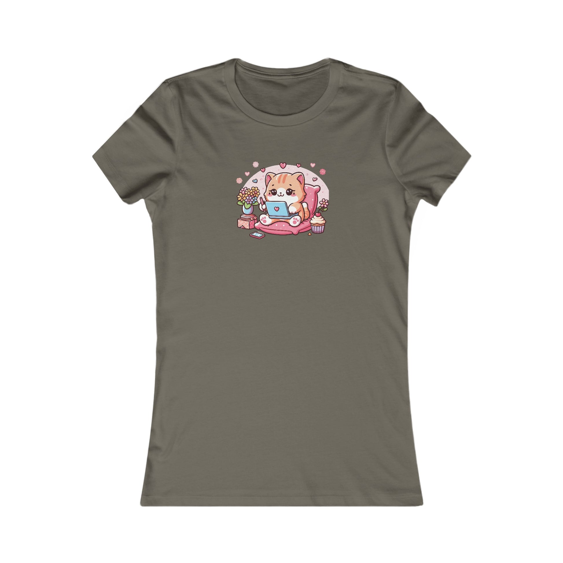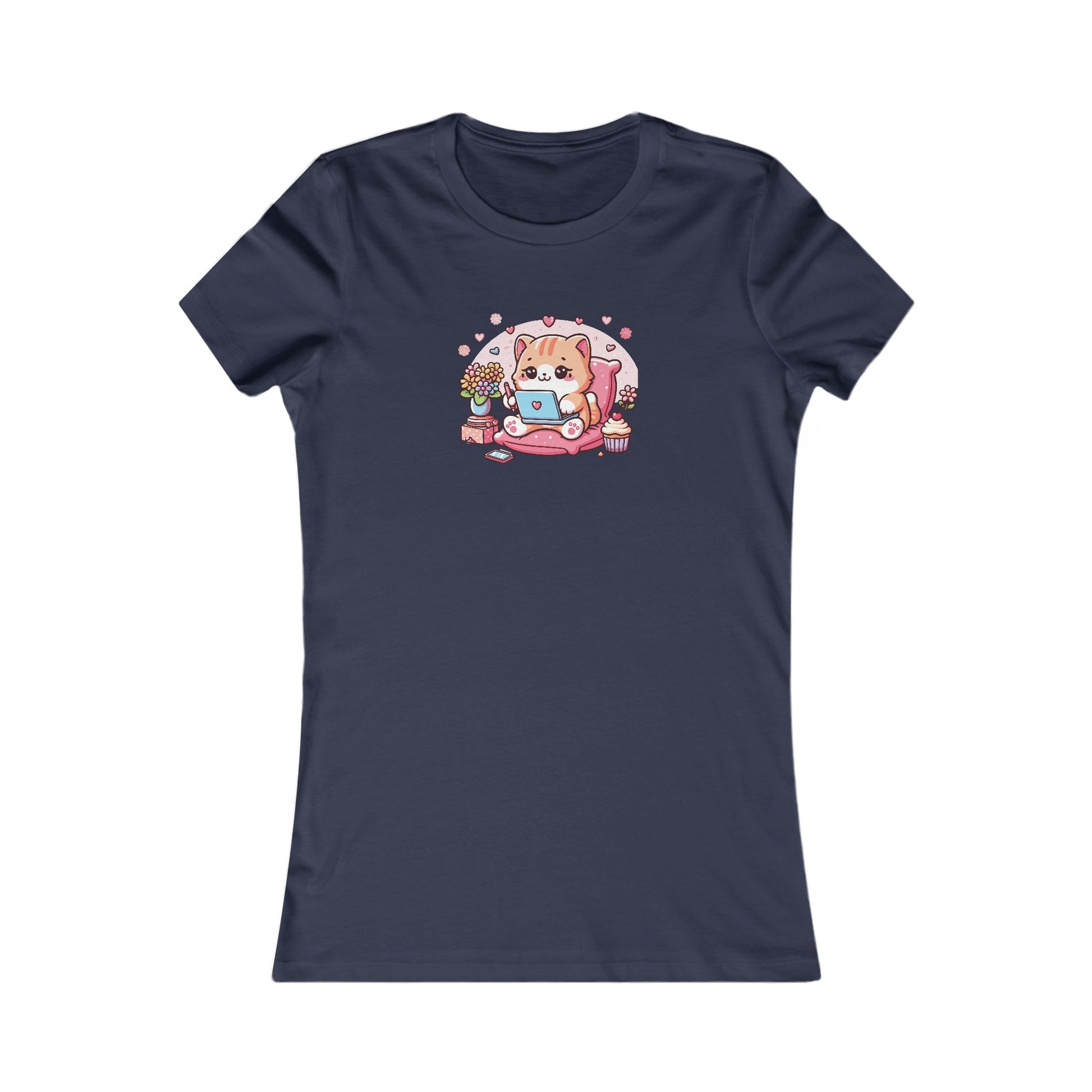 Cat with Laptop Fitted Tee