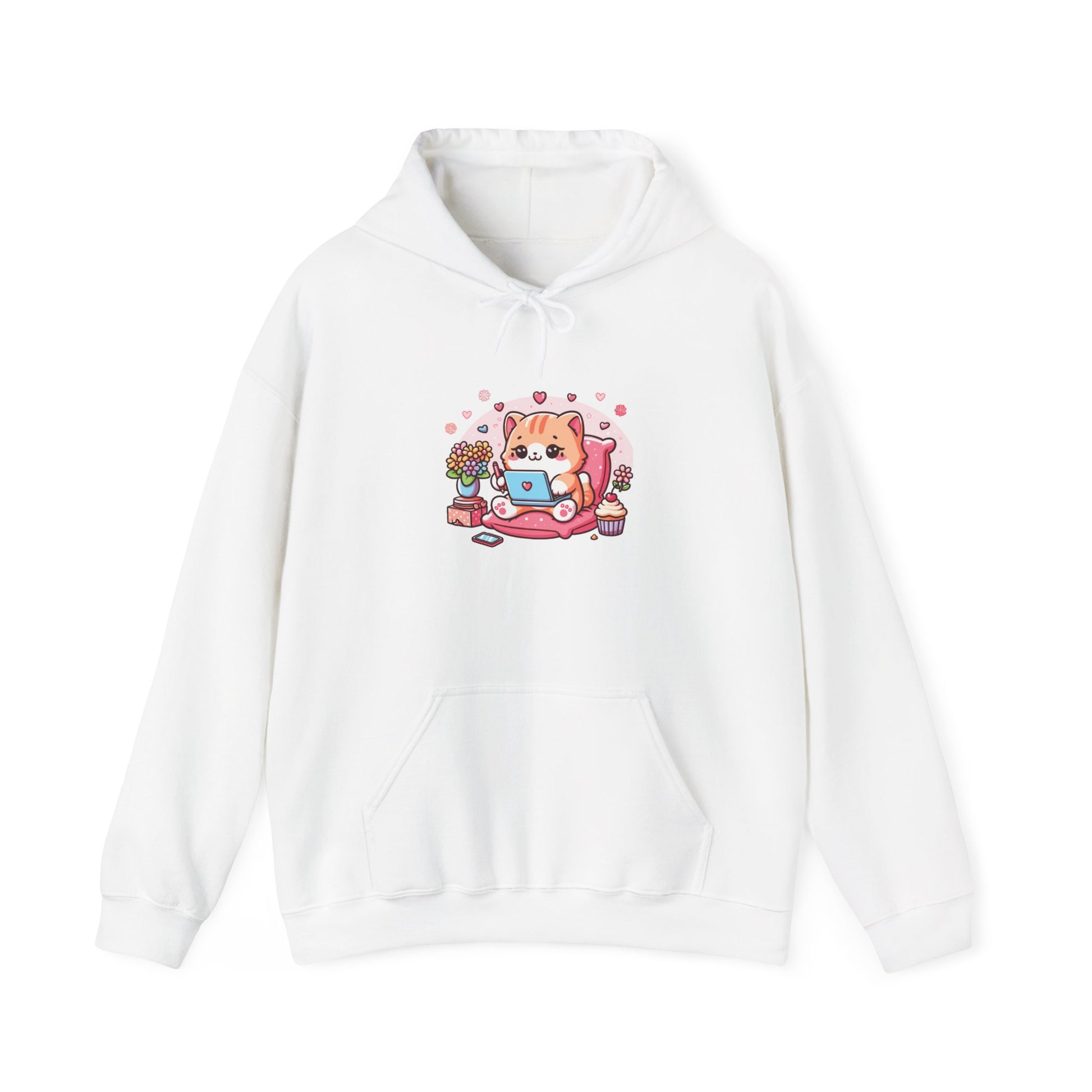 Cat with Laptop Hooded Sweatshirt