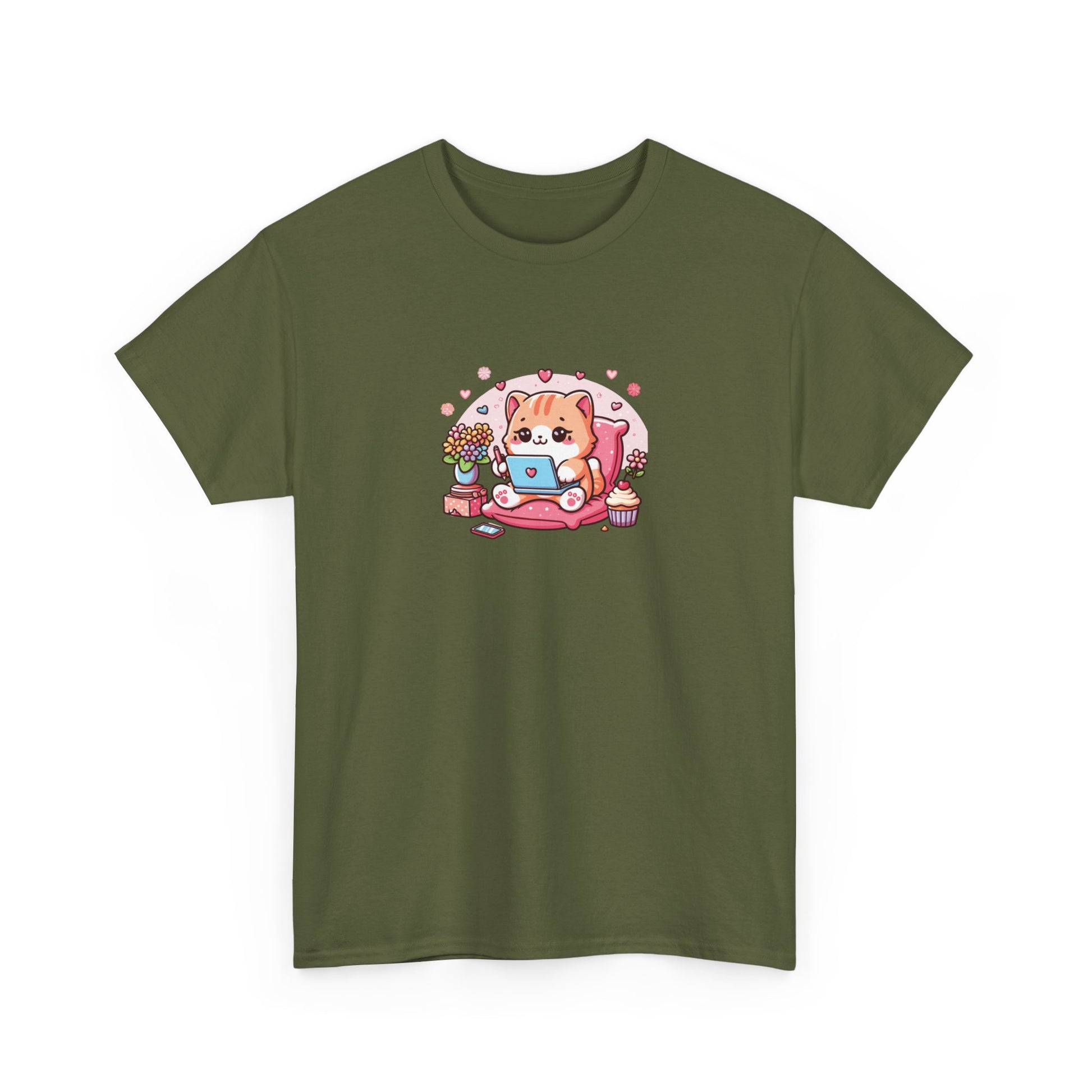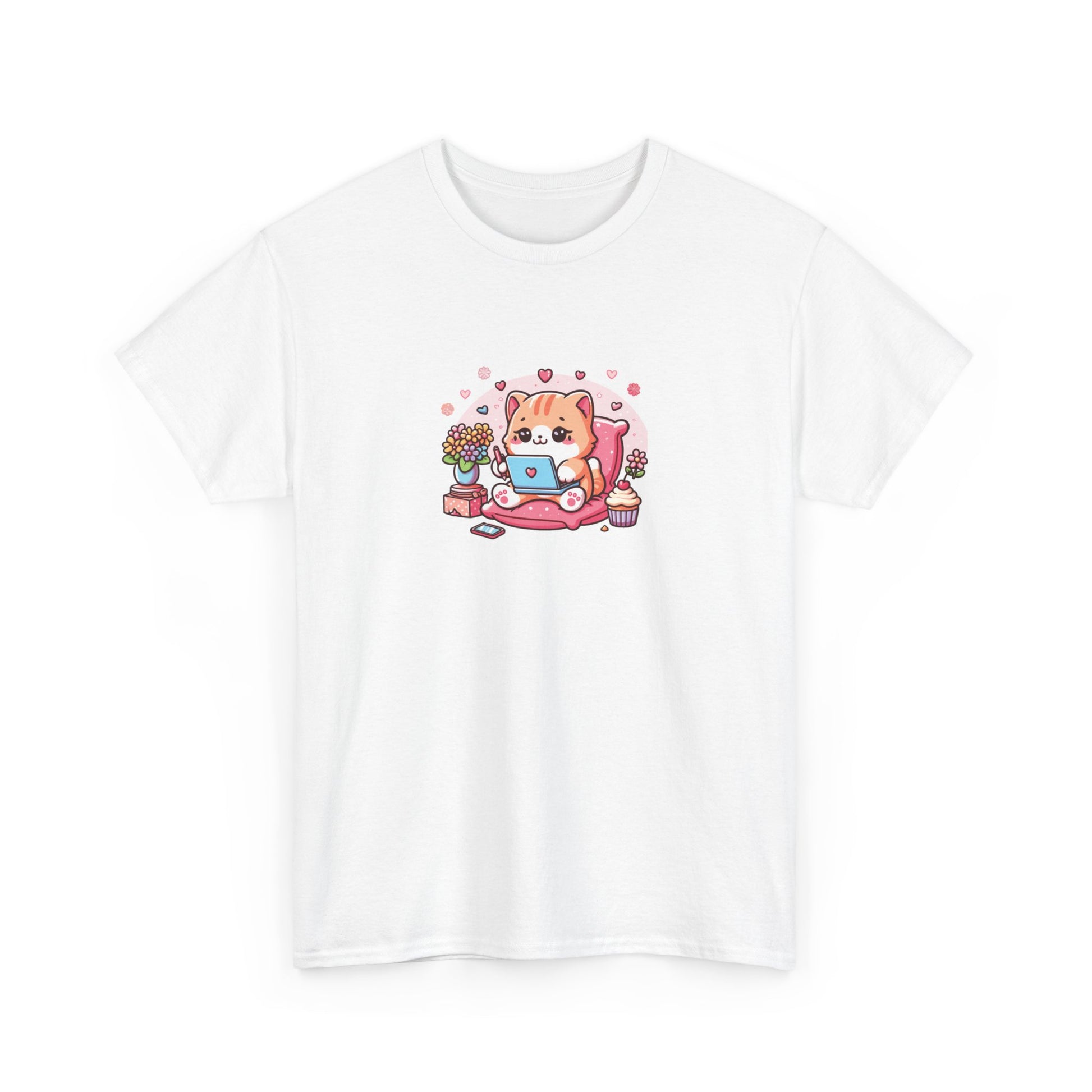 Cat with Laptop Short Sleeve Tee