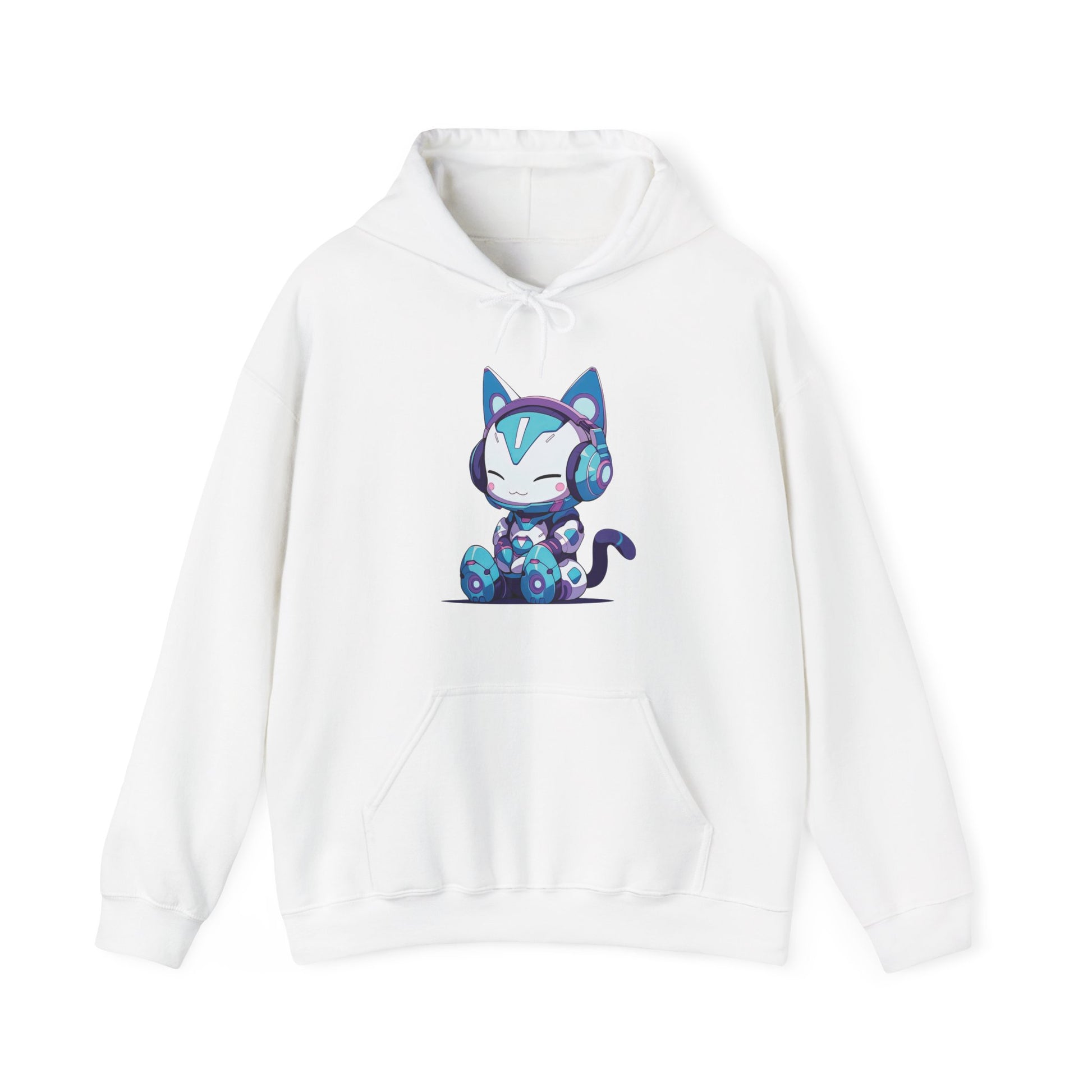 Futuristic Cat with Headphones Hooded Sweatshirt