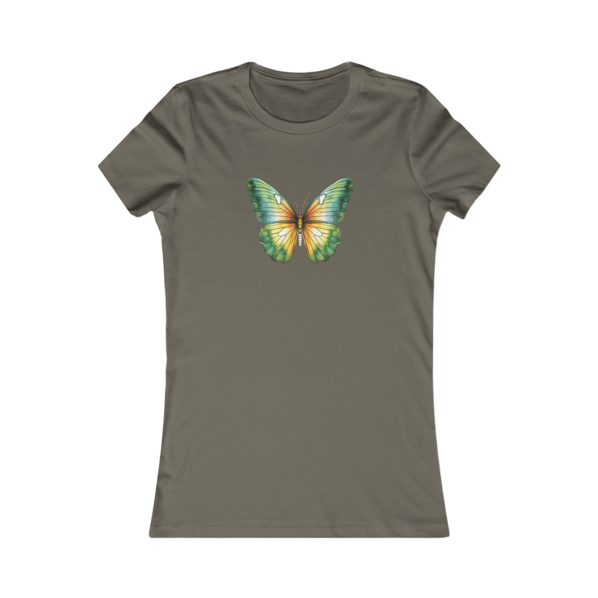 Green Watercolor Butterfly Fitted Tee