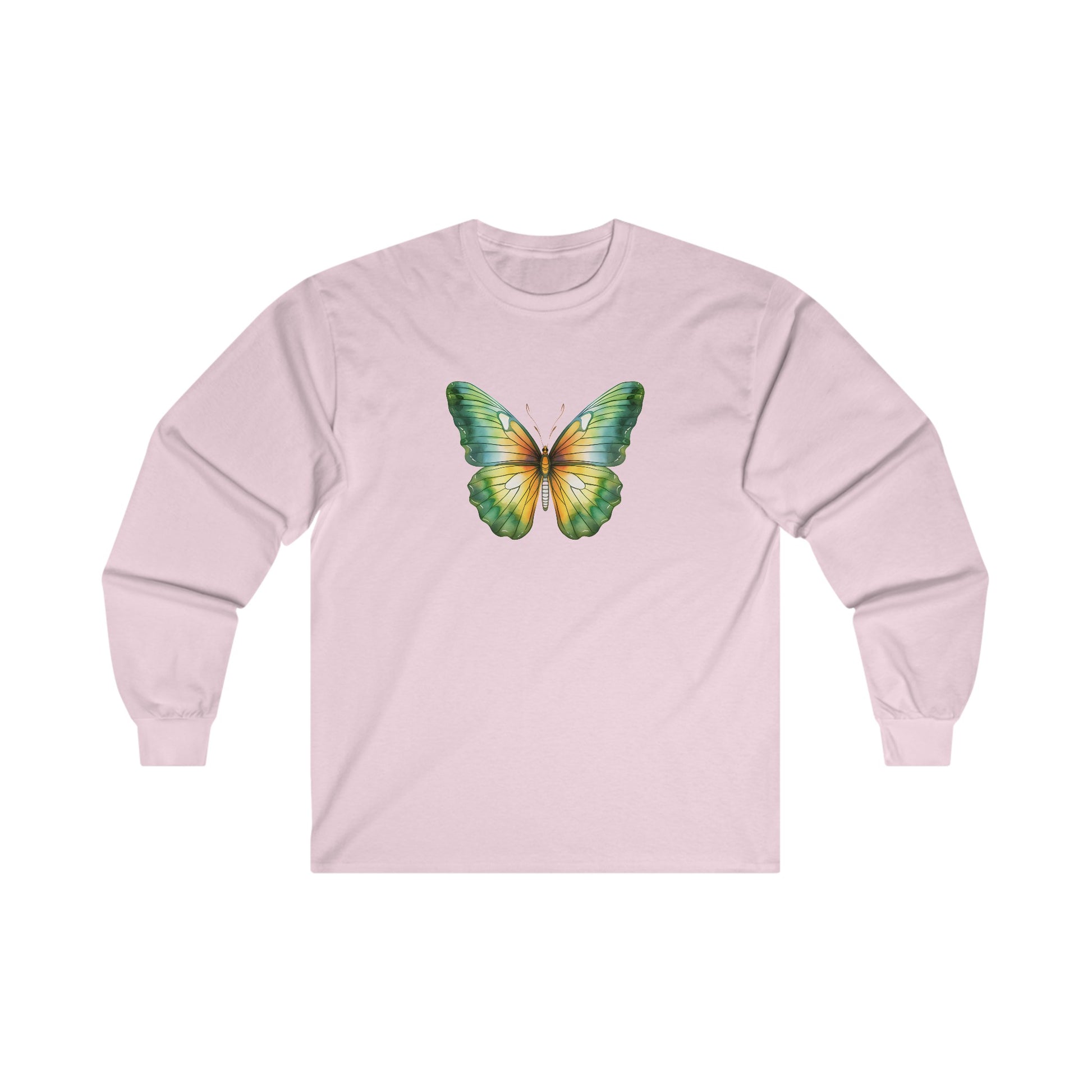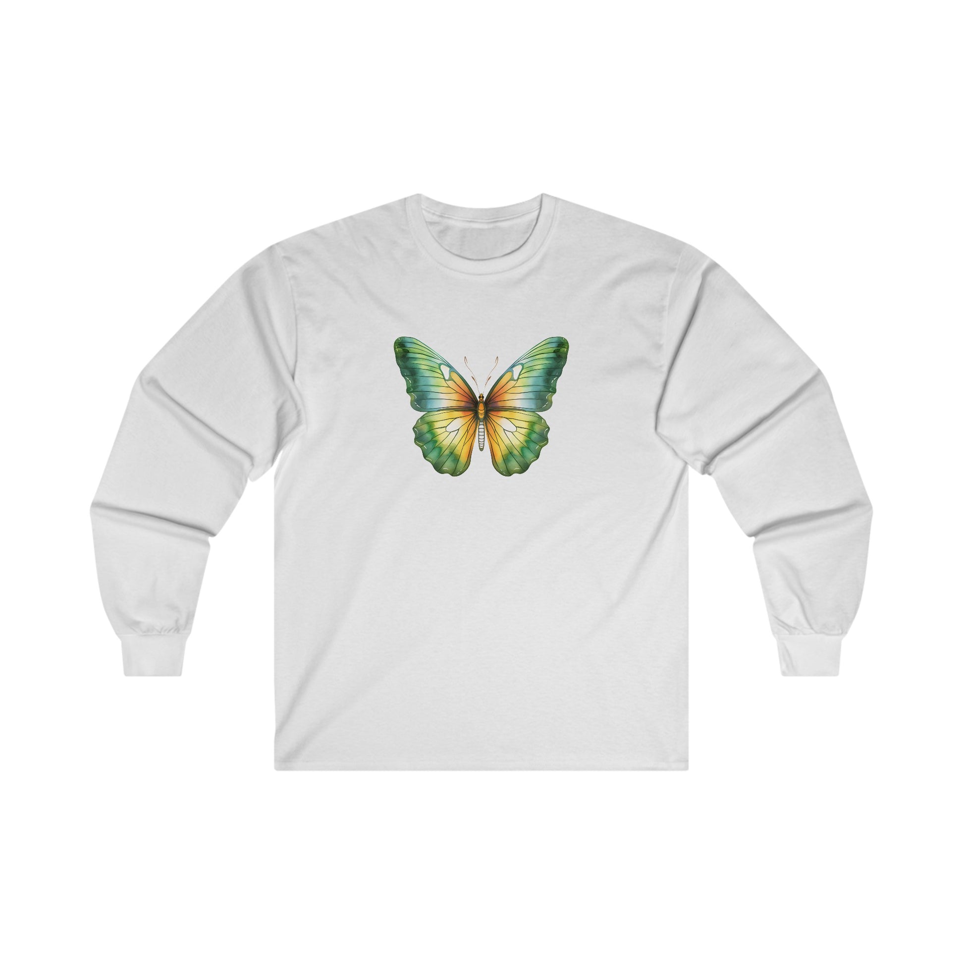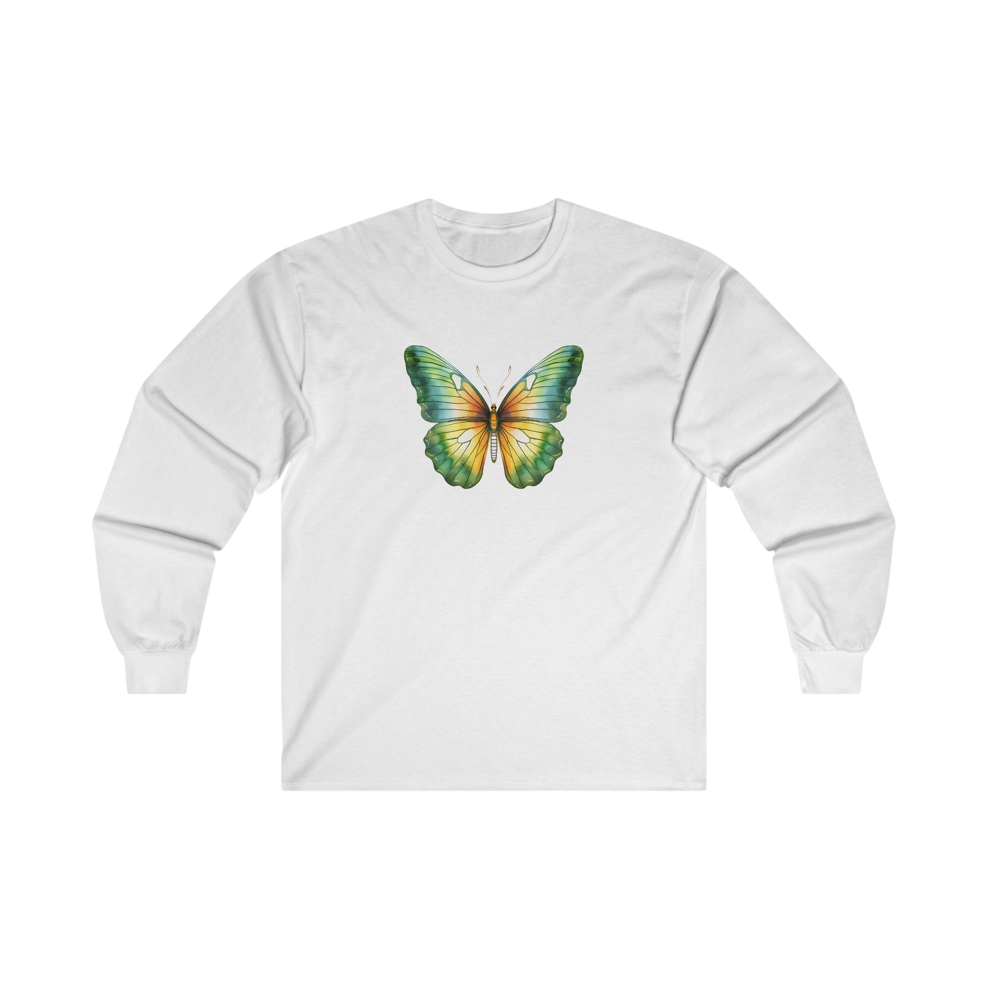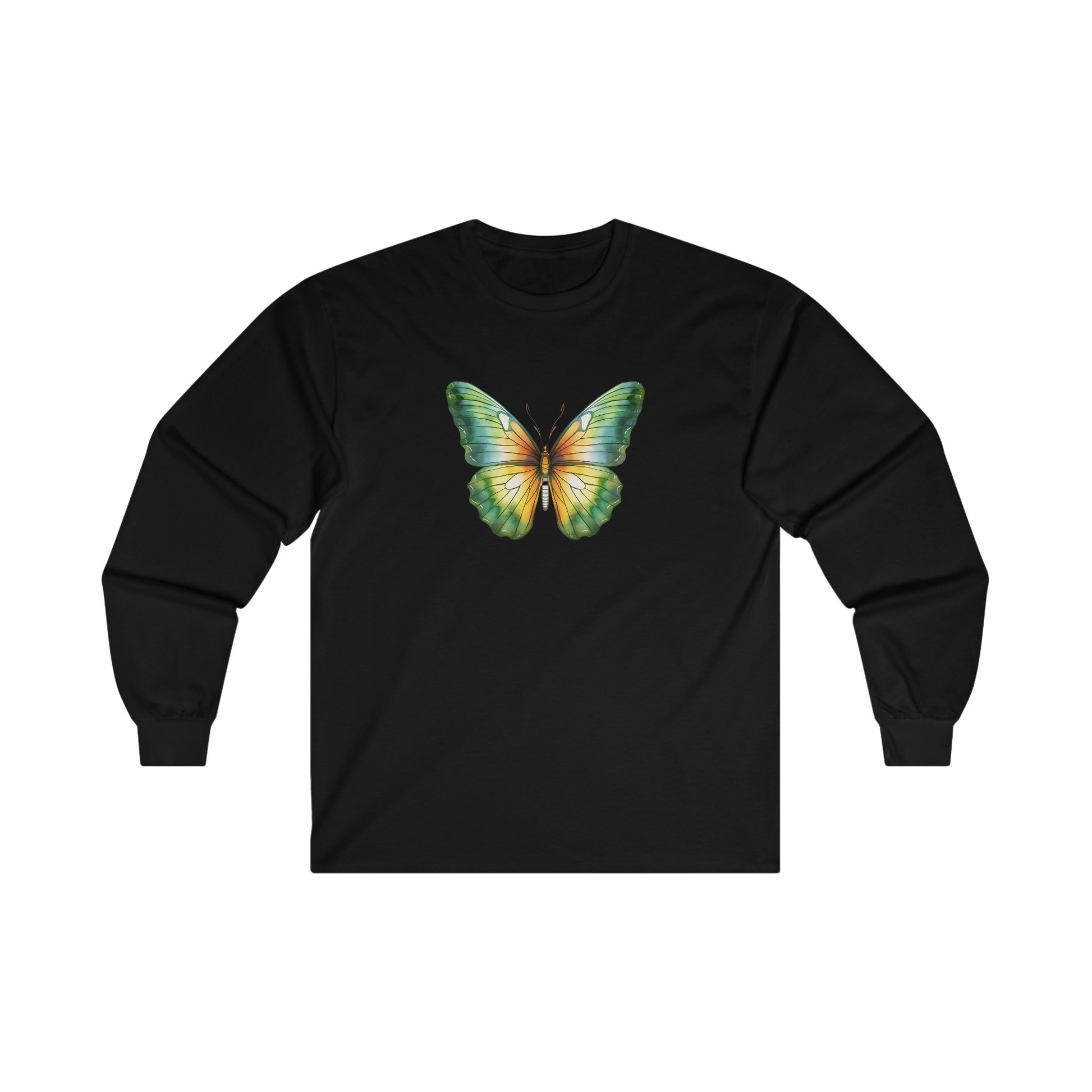 Green Watercolor Butterfly Long Sleeve Tee
