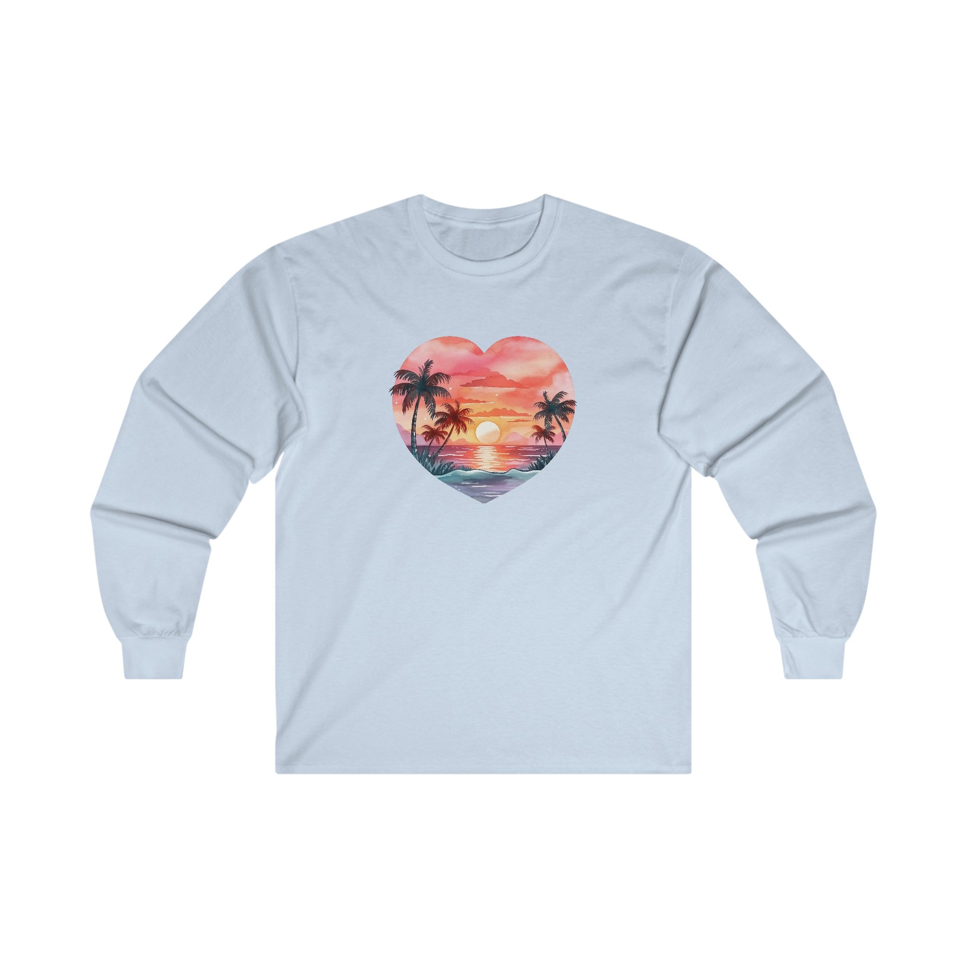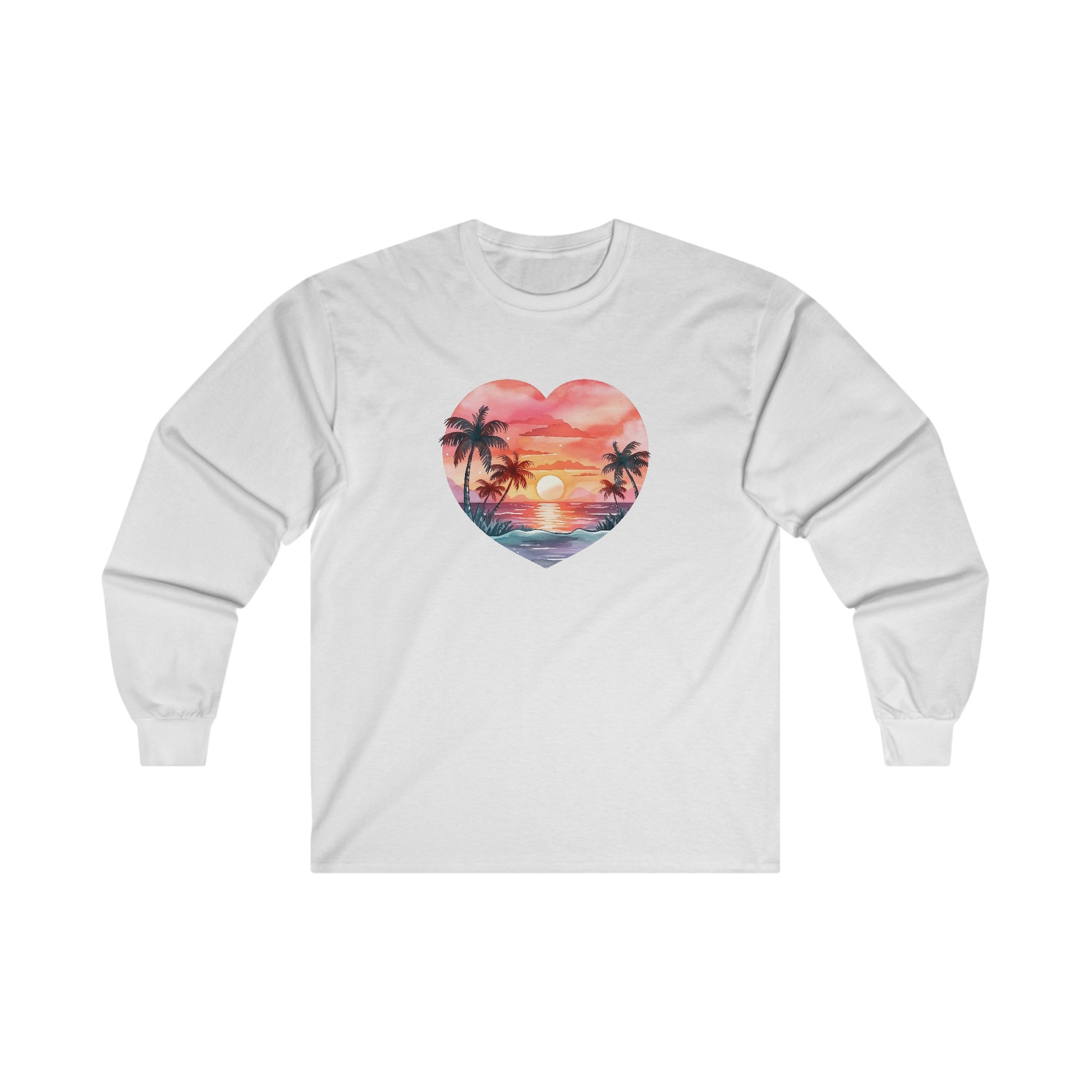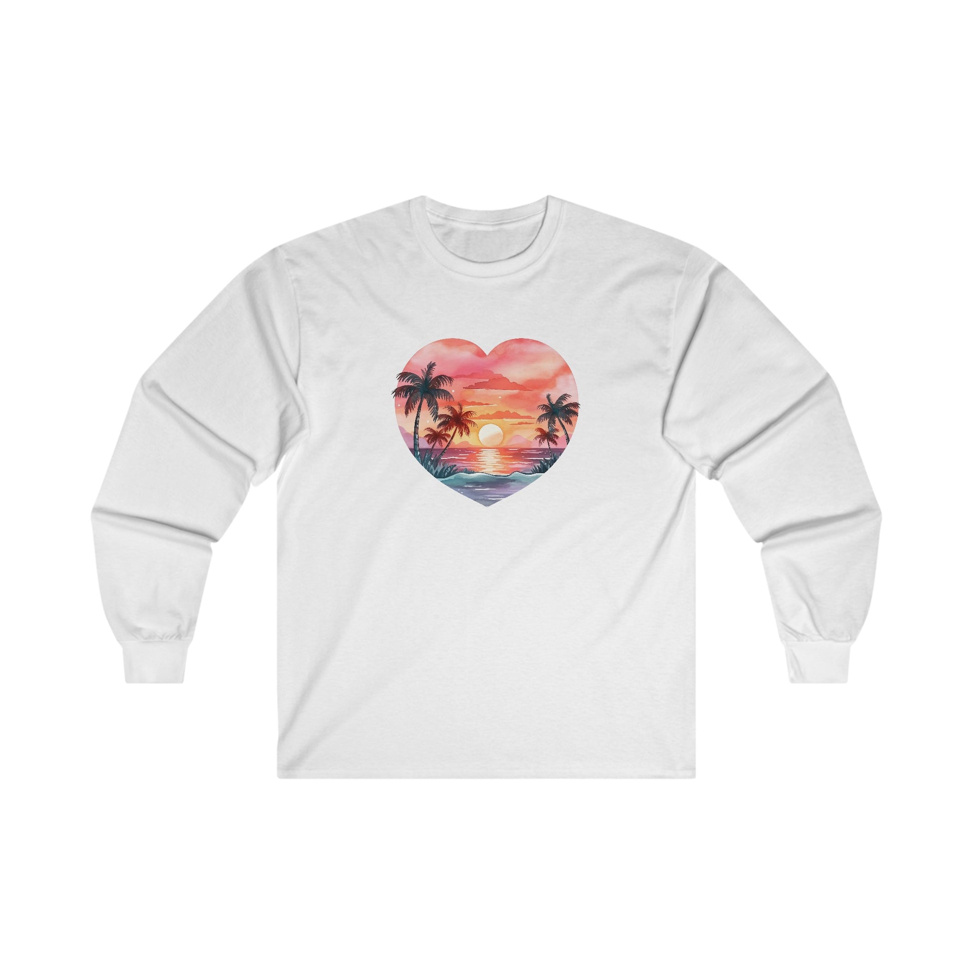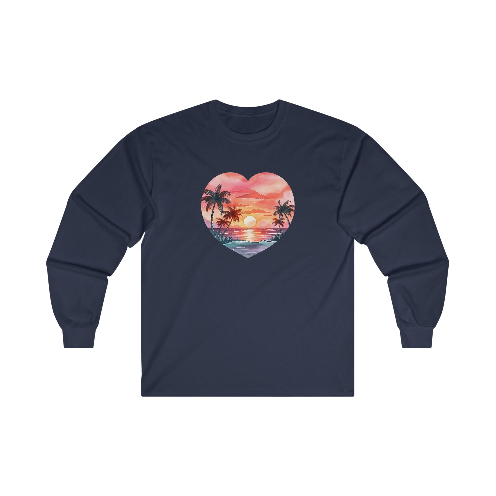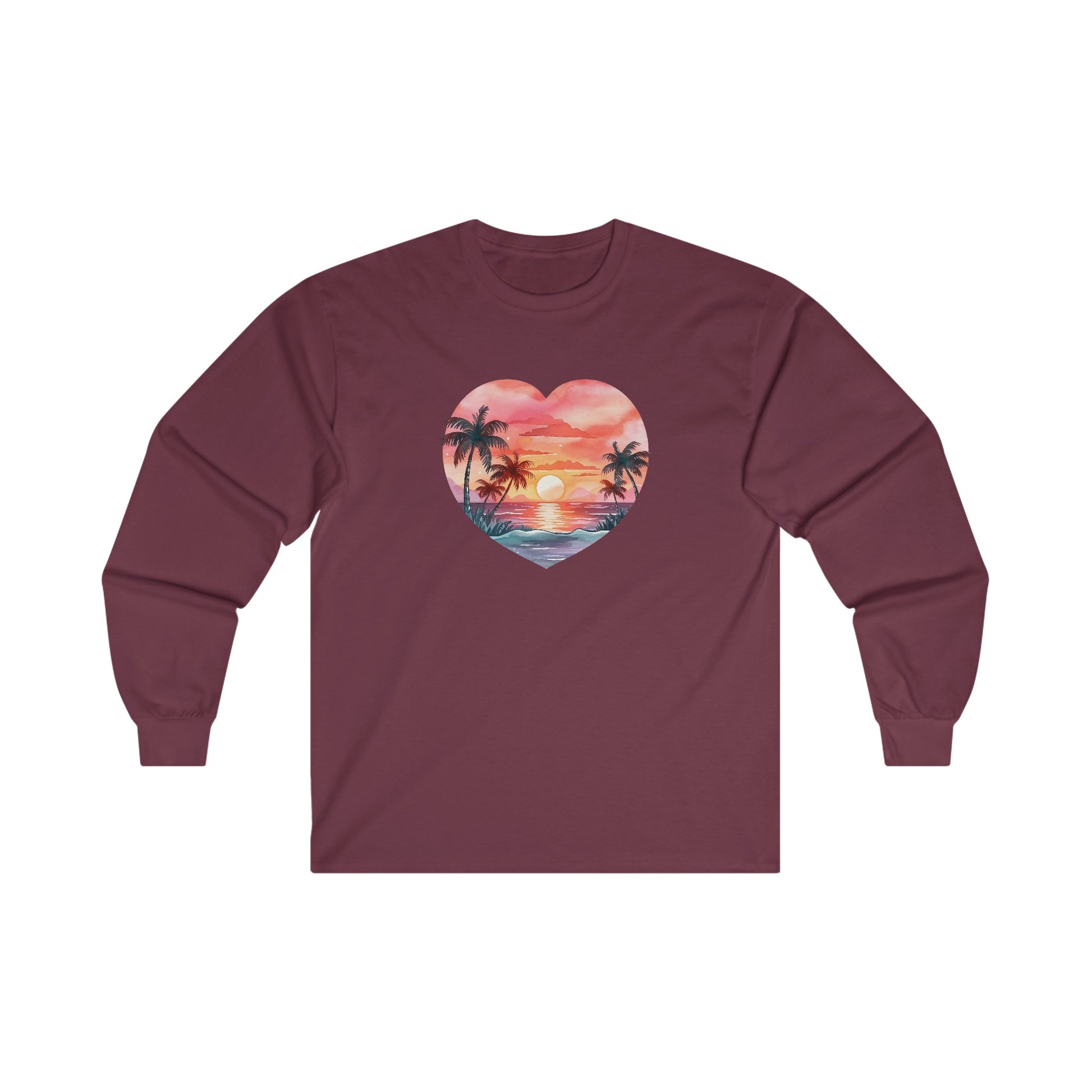 Retro Beach Sunset Heart Long Sleeve Tee