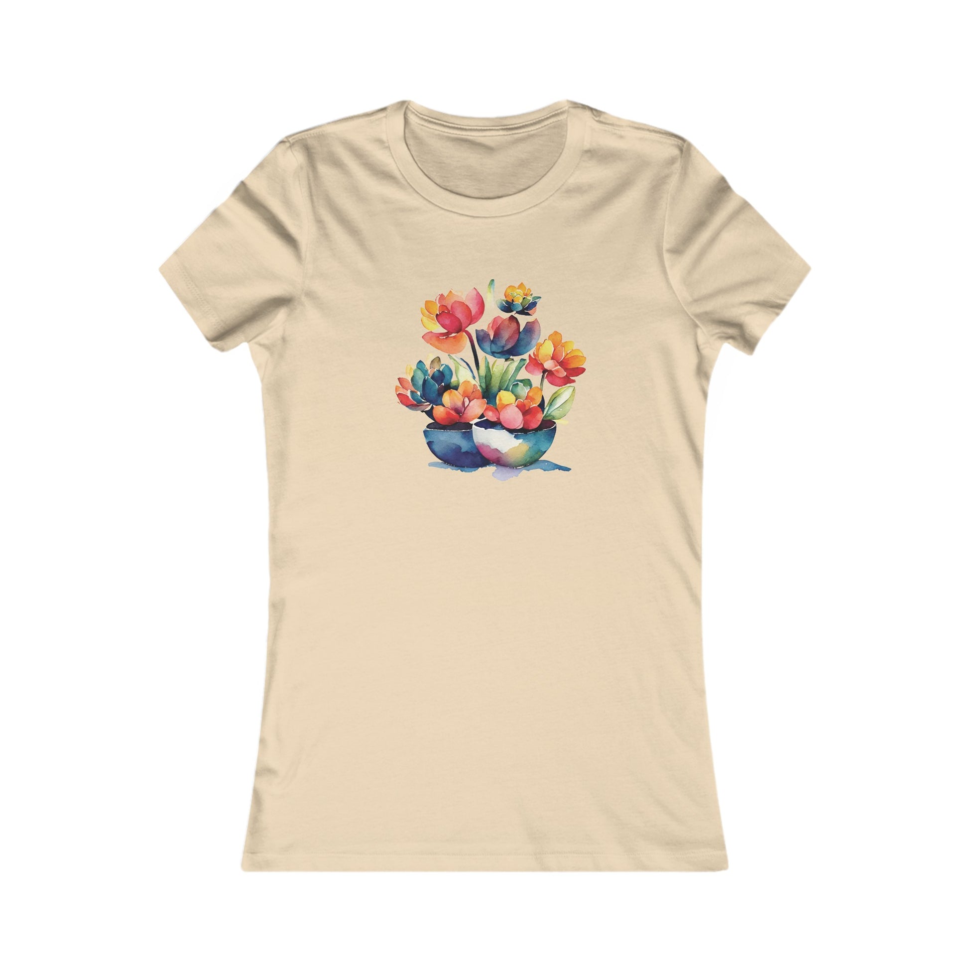 Watercolor Succulent Flowers Fitted Tee